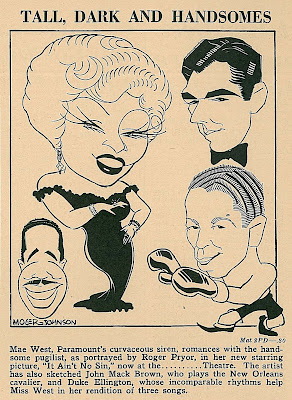 My posting motor started upon discovery of a pressbook for It Ain't No Sin (at Cinevent ... one more reason not to miss those). So what was this lavish manual selling? Not a lost Mae West as it turns out ... well, maybe it was ... a sacrificed one might better describe leavings of censor mischief that emerged finally as Belle Of the Nineties. I'd seen posters bearing the discarded title. Paramount had its sales force well afield before reining in It Ain't No Sin. Was that title a gauntlet thrown before Breen and compatriots (which included an enraged Legion Of Decency)? I wonder if the same ID with Sylvia Sidney or Nancy Carroll would have caused such rancor. Mae West was surely chief lightning rod for repression's new authority, being offered up as reason we needed a Code. There are many books about censor wars in Hollywood. I get depressed reading such, especially ones explaining cuts made and shorn footage discarded (for all time in most cases). Not much fun mulling over something we can't go back and fix. Folks who've written of how Mae West saved Paramount from ruin, including at least one Paramount executive of the day, are on target, I suspect. She was one star that really did come to the rescue of an ailing employer. I can't measure anticipation for It Ain't No Sin in 1934, but on heels of She Done Him Wrong and I'm No Angel, it must have been immense. Those last two had been respective friskiest movies in (every) town, and this humdinger promised to be capper to both.